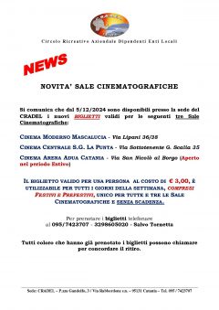 BIGLIETTO CINEMA UNICO PER TRE SALE